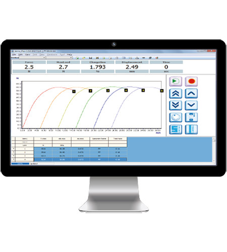 量測荷重採用多點感應,使力量感應更為精準,另可加購軟體連線,進行各種高強度及長時間的測試與分析,且可於測試時同時顯示力量與位移等即時數據及其曲線圖,測試結果可儲存、輸出報表進行檔案管理。