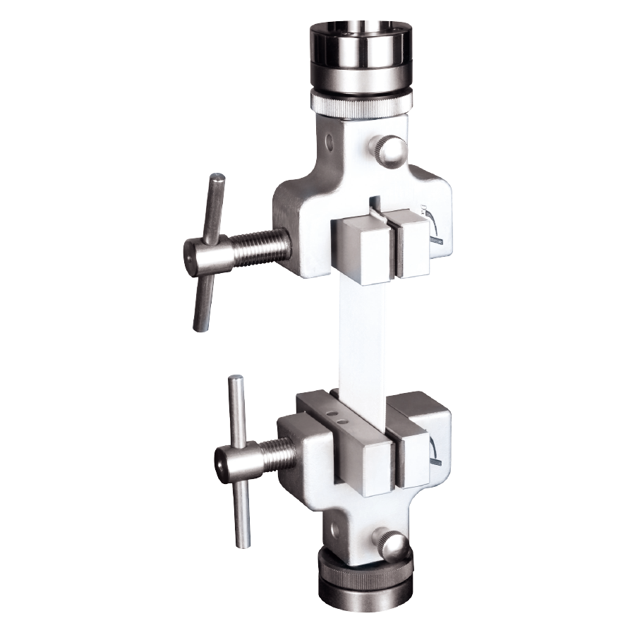 長延伸器適用於延伸率高於20%如橡膠材料、塑膠、PE類、布類、織帶類業等高延伸性材料伸長率量測時使用的重要配件,通常會將試片作成啞鈴狀,延伸器可與COMETECH 生產的機台連結並自動偵測試片測試過程中之變形量。